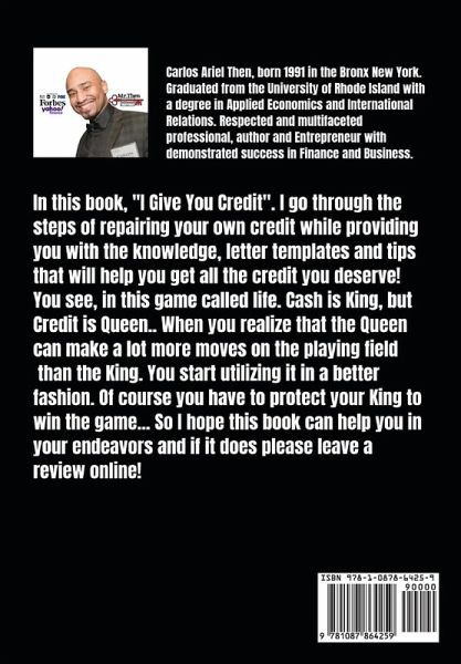 In this book, "I Give You Credit". I go through the steps of repairing your own credit while providing you with the knowledge, letter templates and tips that will help you get all the credit you deserve! You see, in this game called life. Cash is King, but Credit is Queen.. When you realize that the Queen can make a lot more moves on the playing field than the King. You start utilizing it in a better fashion. But of course, you have to protect your King to win the game...So let's get started!