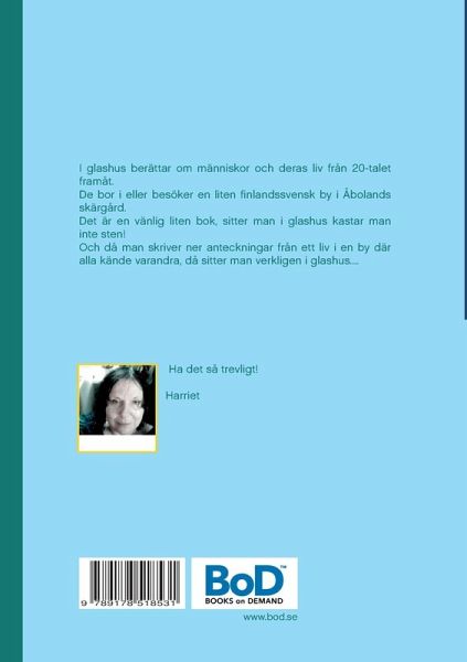 I glashus berättar om människor och deras liv från 20-talet framåt. De bor i eller besöker en liten finlandssvensk by i Åbolands skärgård. Det är en vänlig liten bok, sitter man i glashus kastar man inte sten! Och då man skriver ner anteckningar från ett liv i en by där alla kände varandra, då sitter man verkligen i glashus....