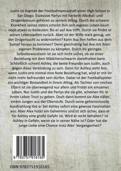 Justin ist Kapitän der Footballmannschaft einer High School in San Diego. Exzessive Partys mit herbem Alkohol- und Drogenkonsum gehören zu seinem Alltag. Durch die schwere Krankheit seines Vaters scheint ihm sein eigenes Leben kaum noch etwas zu Bedeuten. Bis er auf Ava trifft. Durch sie findet er seinen Lebenswillen zurück. Aber ist der Wille stark genug, um der Drogensucht zu widerstehen? Kann Ava ihm helfen aus dem Sumpf heraus zu kommen? Denn gleichzeitig hat Ava mit ihren eigenen Problemen zu kämpfen. Durch ihr geringes Selbstbewusstsein ist sie sich nicht sicher, ob sie einer Beziehung mit dem Mädchenschwarm standhalten kann. Schließlich scheint Ashley, die beste Freundin von Justin, auch gegen diese Verbindung zu sein. Denn für Ashley steht fest, wenn Justin erst einmal eine feste Beziehung hat, wird er mit ihr nicht mehr befreundet sein dürfen. Dabei ist der Footballspieler ein wichtiger Bestandteil in ihrem Alltag. Als Tochter von reichen Eltern ist sie überwiegend nur allein und fristet ein einsames Leben. Nur Justin und die Partys die sie gibt, scheinen ihr, in ihrem Leben Trost zu geben. Doch dann kommt sie Alex näher, einem Jungen aus der Oberstufe. Durch seine geheimnisvolle Ausstrahlung löst er bei Ashley sofort eine gewisse Faszination aus. Aber Alex hütet ein Geheimnis und ist sich sicher, dass er für Ashley eine große Gefahr ist. Wird er recht behalten? Ist Ashley in Gefahr, wenn sie in seiner Nähe ist? Oder hat die junge Liebe eine Chance trotz Alex' Vergangenheit?