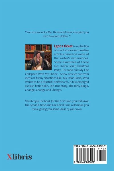 I got a ticket is a collection of short stories and creative articles based on some of the writer's experiences. Some examples of these are: I Got a Ticket, Christmas Party, Tornado and My Life Collapsed With My Phone. A few articles are from ideas or funny situations like, My Dear Razia, Who Wants to be a Starfish, Sniffers etc. A few emerged as flash fiction like, The True story, The Dirty Bingo. Change, Change and Change.