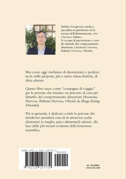 Mai come oggi rischiamo di disorientarci e perderci tra le mille proposte, più o meno miracolistiche, di dieta salutare. Questo libro nasce come "compagno di viaggio" per le persone che iniziano un percorso di cura per disturbo del comportamento alimentare (Anoressia Nervosa, Bulimia Nervosa, Obesità da Binge Eating Disorder). Più in generale, è dedicato a tutte le persone che desiderino prendersi cura di sé attraverso scelte alimentari (o meglio, psico-alimentari) salutari, alla luce delle più recenti evidenze della letteratura scientifica. L'autore: Stefano Erzegovesi, medico, specialista in psichiatria ed in scienza dell'alimentazione, vive e lavora a Milano. Si occupa di prevenzione e cura dei disturbi del comportamento alimentare (Anoressia Nervosa, Bulimia Nervosa, Obesità).