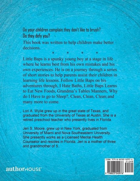 When my own children were little, I used to chase them around the house to get them to get then to brush their teeth. I made up a story of a little boy who had smelly breath and what happened to him. - 30 years later, "here you go", the same version in book format. Read them to your children, and let them see what happens when you don't brush your teeth. This is a great way to help your child learn what is right what is wrong. It's an educational experience. This book was written by Jeri S. Moore, MS, LMHC, CAP (therapist), mother, & grandmother of 6 who inspired me. Also, written by Lori A. Wylie, retired preschool teacher.