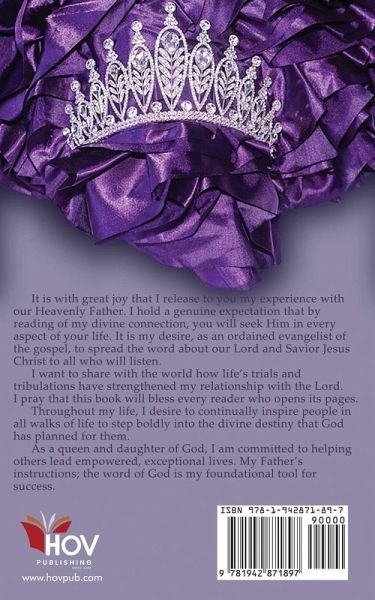 It is with great joy that I release to you my experience with our Heavenly Father. I hold a genuine expectation that by reading of my divine connection, you will seek Him in every aspect of your life. It is my desire, as an ordained evangelist of the gospel, to spread the word about our Lord and Savior Jesus Christ to all who will listen. I want to share with the world how life's trials and tribulations have strengthened my relationship with the Lord. I pray that this book will bless every reader who opens its pages. Throughout my life, I desire to continually inspire people in all walks of life to step boldly into the divine destiny that God has planned for them. As a queen and daughter of God, I am committed to helping others lead empowered, exceptional lives. My Father's instructions, the word of God, is my foundational tool for success.