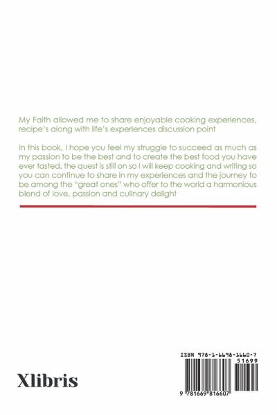 My Faith allowed me to share enjoyable cooking experiences, recipe's along with life's experiences discussion point In this book, I hope you feel my struggle to succeed as much as my passion to be the best and to create the best food you have ever tasted. the quest is still on so I will keep cooking and writing so you can continue to share in my experiences and the journey to be among the "great ones" who offer to the world a harmonious blend of love, passion and culinary delight