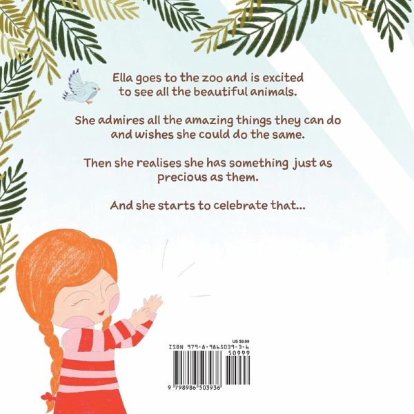 Ella goes to the zoo and is excited to see all the beautiful animals. She admires all the amazing things they can do and wishes she could do the same. Then she realises she has something just as precious as them. And she starts to celebrate that...