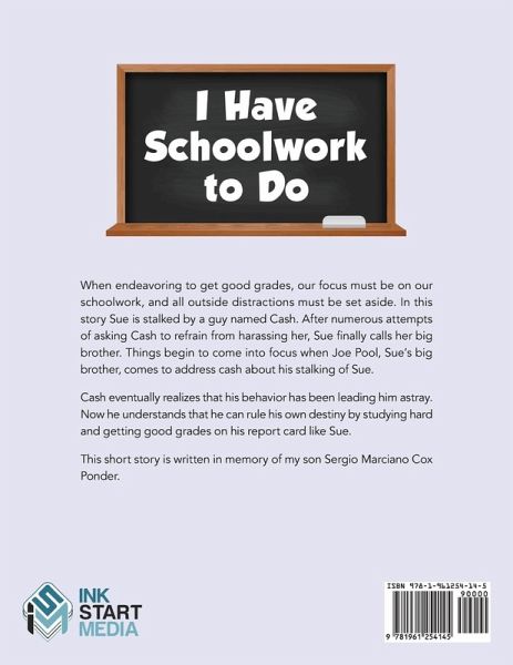 When endeavoring to get good grades, our focus must be on our schoolwork, and all outside distractions must be set aside. In this story Sue is stalked by a guy named Cash. After numerous attempts of asking Cash to refrain from harassing her, Sue finally calls her big brother. Things begin to come into focus when Joe Pool, Sue's big brother, comes to address cash about his stalking of Sue.Cash eventually realizes that his behavior has been leading him astray. Now he understands that he can rule his own destiny by studying hard and getting good gradeson his report card like Sue.This short story is written in memory of my son Sergio Marciano Cox Ponder.