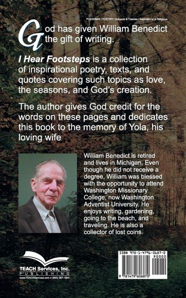 God has given William Bendict the gift of writing. "I Hear Footsteps" is a collection of inspirational poetry, texts, and quotes covering such topics as love, the seasons, and God's creation. The author gives God credit for the words on these pages and dedicates this book to the memory of Yola, his loving wife.