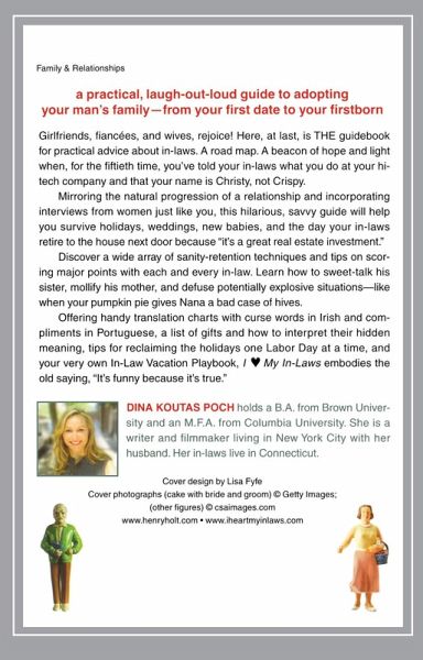A practical, laugh-out-loud guide to adopting your man's family-from your first date to your firstborn Girlfriends, fiancées, and wives rejoice! Here, at last, is a book you can turn to in times of stress, panic, and family vacations to the smallest cottage ever built on the island of Nantucket. Mirroring the natural progression of a relationship and incorporating interviews from women just like you, this hilarious, savvy guide will help you survive your first meeting with future in-laws, from the holidays, weddings, and new babies, to the day they retire to the house next door because "it's a great real estate investment." Discover a wide array of sanity-retention techniques and tips on scoring major points with each and every in-law. Learn how to sweet-talk his sister, mollify his mother, and defuse potentially explosive situations-like when your pumpkin pie gives Nana a bad case of hives. Stories range from the tragic "my father-in-law just pinched my ass and not in that sportsmanship kind of way," to the triumphant "I'm now CEO of my grandfather-in-law's cement company-Thanks Pupup!" Offering handy translation charts with curse words in Persian and compliments in Cantonese, a list of gifts and how to interpret their hidden meaning, tips for reclaiming the holidays one Bastille Day at a time, and your very own set of Mother-in-Law MadLibs, I Heart My In-laws embodies the old saying, "It's funny because it's true."