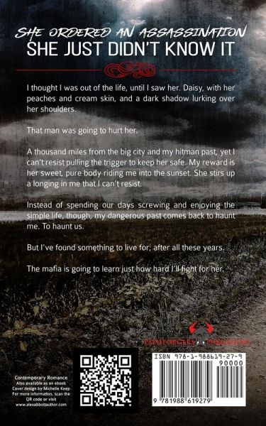 I thought I was out of the life, until I saw her. Daisy, with her peaches and cream skin, and a dark shadow lurking over her shoulders. That man was going to hurt her. A thousand miles from the big city and my hitman past, yet I can’t resist pulling the trigger to keep her safe. My reward is her sweet, pure body riding me into the sunset. She stirs up a longing in me that I can’t resist. But instead of spending our days screwing and enjoying the simple life, my dangerous past comes back to haunt me. To haunt us. I’ve found something to live for, after all these years. The mafia is going to learn just how hard I’ll fight for her.