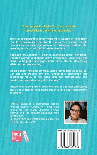 They swiped right for fun, but instead found a love they never expected Tired of disappointing dates with men, Dakota is convinced true love has passed her by. But when her lesbian friends convince her to include women in her dating app options, she instantly hits it off with NYPD detective Jack. Although Jack makes it clear relationships aren't her thing, Dakota's warmth and charm prove irresistible. Soon, what was meant to be just a one-night stand turns into an intoxicating affair neither saw coming. When deeper feelings emerge, Jack's emotional walls go up. Can she and Dakota turn their undeniable connection into something more, or will their different backgrounds and painful past experiences get in the way? I Hope That I Don't Fall In Love With You is a tender yet steamy story about risking your heart again to find your unexpected soulmate. Grab your copy of this sizzling one-night-to-forever sapphic romance now!