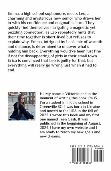 Emma, a high school sophomore, meets Leo, a charming and mysterious new senior who draws her in with his confidence and enigmatic allure. They quickly find themselves navigating a magnetic yet puzzling connection, as Leo repeatedly hints that their time together is short-lived but refuses to explain why. Emma, intrigued by Leo's mix of warmth and distance, is determined to uncover what's holding him back. Their growing bond is complicated by her best friend, Erica, who suspects Leo is hiding something dangerous and warns Emma against becoming too attached. Despite Erica's warnings, Emma's curiosity and feelings for Leo only deepen, making her wonder if his secrecy hides something darker, perhaps even dangerous. Erica is sure that Leo is a murder that is guilty for all kidnapping and murdering in the quiet town, all the evidences point towards him. But something goes wrong right in the middle of where it had to end.