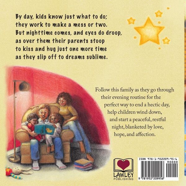 By day, kids know just what to do; they work to make a mess or two. But nighttime comes, and eyes do droop, as over them, their parents stoop; to kiss and hug just one more time, as they slip off to dreams sublime. There are so many ways to say "goodnight". But do those quick words always communicate all the love and hope a parent wants to express? Follow this busy family through their evening routine to help children wind down and feel sleepy, and rest with the assurance of the wishes and hopes of loving parents, as well as the desire to keep them safe and surrounded by affection.