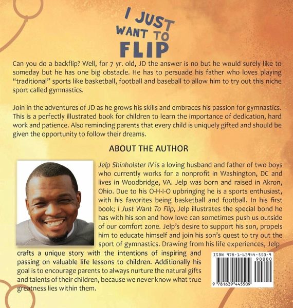 Can you do a backflip? Well, for 7 yr. old, JD the answer is no but he would surely like to someday but he has one big obstacle. He has to persuade his father who loves playing "traditional" sports like basketball, football and baseball to allow him to try out this niche sport called gymnastics. Join in the adventures of JD as he grows his skills and embraces his passion for gymnastics. This is a perfectly illustrated book for children to learn the importance of dedication, hard work and patience. Also reminding parents that every child is uniquely gifted and should be given the opportunity to follow their dreams.