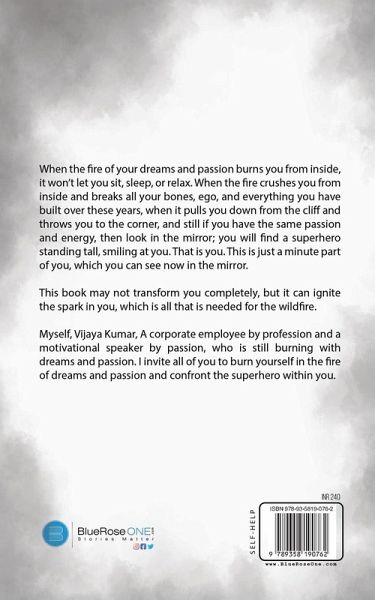 Life is not about winning or coming first in the finishing line. It's about enjoying each and every moment of the journey. This book touches on those aspects which have the potential to change your life. It has the power to unleash unlimited energy in you. To stay positive is the golden rule of winning the battle called life. The author tried to include all the possible points which can help to keep you inspired day in and day out. With stories from life and with short stories, the Author tried to explain the points which can be useful to find a new you within you. These topics are like a flap in the wings of the aeroplane which looks so small, but have the power to control the multi-ton aircraft lifts and drags. It's like a small spark in the forest which can end up in a big wildfire. These aspects might look small but have the power to change your destiny.