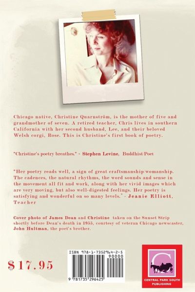 Chicago native, Christine Quarnström, is the mother of five and grandmother of seven. A retired teacher, Chris lives in southern California with her second husband, Lee, and their beloved Welsh corgi, Rose. This is Christine's first book of poetry.