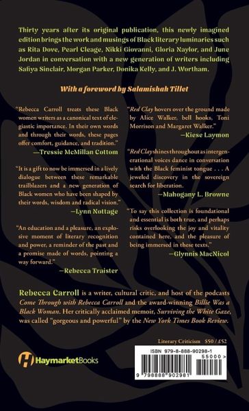 Thirty years after its original publication, this newly imagined edition brings the work and musings of fifteen Black literary luminaries in conversation with a new generation of writers and readers. The first edition of I Know What the Red Clay Looks Like, published in 1994, remains an essential text for readers of Black feminist literature in all genres. Featuring interviews with and excerpts by writers like Rita Dove, Pearl Cleage, Barbara Neely, June Jordan, and others, this indispensable work speaks to the intersections of politics and art-making along the lines of race, gender, sexuality, and class. Now, writer and cultural critic Rebecca Carroll presents the original conversations alongside personalized introductions by some of the brightest voices in today's literary world, including Donika Kelly, Safiya Sinclair, Diamond Sharp, and Chanda Prescod-Weinstein, among others. This new edition also includes an introductory poem by Morgan Parker, a foreword by Salamishah Tillet, and a new author's note. The new contributors carry the torch of the original interviewees' lives and words with heart, rigor, gratitude, and radical imagination, illuminating how these conversations are about more than just writing-they are about life, relationships, joy, gratitude, wellness, and self-preservation. I Know What the Red Clay Looks Like is a book unbound by time, lifting up a chorus of past and present voices. Paying homage to a historic lineage of Black feminist writers and their impact on our current literary landscape, it is a book by and for the storytellers, the poets, the playwrights, the dreamers, and all readers interested in what it means to make art within and from marginalized spaces.