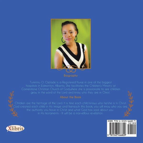 Children are the heritage of the Lord. It is time each child knows who he or she is in Christ. God created each child in his image and likeness. In this book, you will know who you are, the authority you have in Christ, and what God has said about you in his testaments. It will be a marvelous revelation.