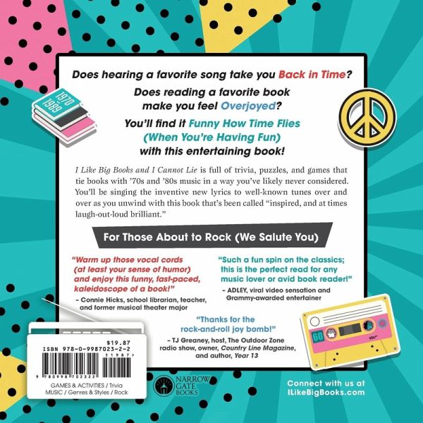 The book MTV VJ Martha Quinn says is "so clever and fun!" can now be yours! If musicians wrote career books, what might they be titled? (Doctor Doctor? Physical?)If Kajagoogoo wrote a book, why would they decline an author interview? (They're Too Shy!)Which music video from Toto has the band playing atop a stack of books? (The answer's inside this book!) Don't miss this entertaining, brain-teasing book full of trivia, puzzles, and games that marry a love of books with a love of classic rock and pop from the 1970s and 1980s. Throughout this full-color edition, you'll find reimagined lyrics that appeal to the book lover and music lover alike and they're sure to make you laugh out loud. Trivia pages link books with musicians and songs from the '70s and '80s. "I like big books and I cannot lie / You other authors can't deny / When a geek walks in with a giant tome / Or a textbook in your face / Then your tongue, gets tied in knots / And you know that text is hot..." ***Great gift for music lovers, trivia buffs, authors, musicians, Gen X. Fun book to keep on your tour bus!