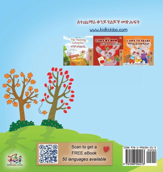 I Love Autumn (Amharic edition). In this children's book, Jimmy, the little bunny, explores autumn, his favorite season. He enjoys being outside and playing with colorful leaves. When it starts raining, he and his family find interesting activities to do at home. They spend a wonderful day together, no matter the weather.