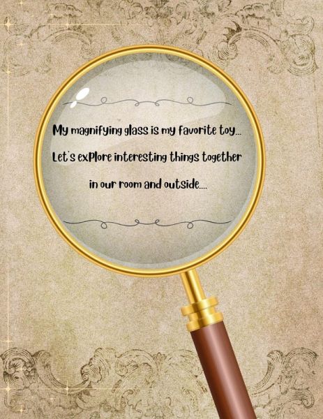 My magnifying glass is my favorite toy . Let's explore interesting things together , in our room and outside.... this book is interactive and fun :)