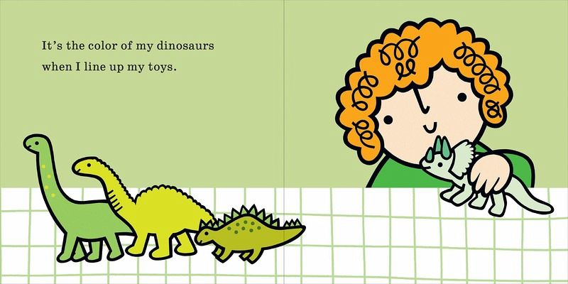 A celebration of the color green--from dinosaurs and bicycles to geckos and avocados.