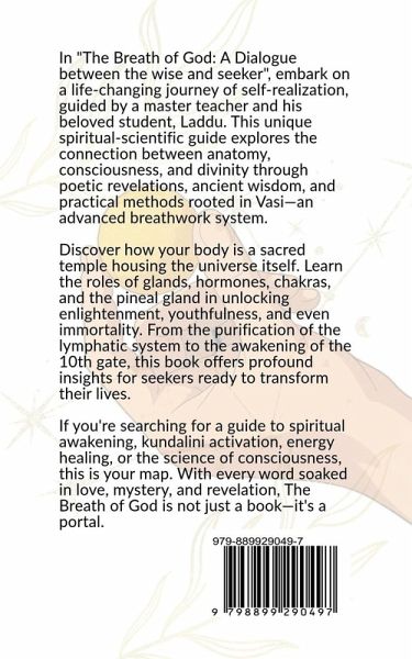 The Breath of God: Awakening Through Flesh and Spirit In this rare and transformative work, a loving soul guiding Other souls, on a sacred journey that bridges spiritual enlightenment and scientific anatomy. Through heartfelt dialogues and deep revelations, the reader is shown how the human body itself holds the keys to immortality, divine light, and cosmic oneness. Combining ancient wisdom with modern understanding, The Breath of God uncovers the hidden truths about chakras, glandular systems, Vasi breathing, and the legendary 10th Gate. Readers will discover how disciplines like Surya Kalai (Sun Phase) and Chandra Kalai (Moon Phase) ignite inner transformation - purifying the rivers of blood, lymph, and glymph - to unlock the full potential of the human body and spirit.