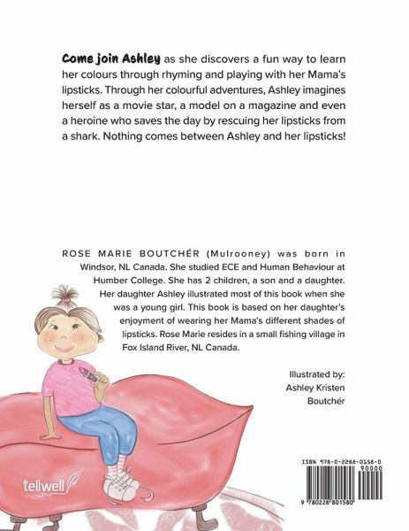 Come join Ashley as she discovers a fun way to learn her colours through rhyming and playing with her Mama's lipsticks. Through her colourful adventures, Ashley imagines herself as a movie star, a model on the cover of a magazine and even a heroine who saves the day by rescuing her lipsticks from a shark. Nothing comes between Ashley and her lipsticks!