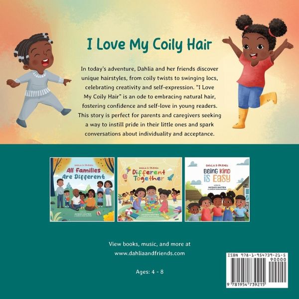 In today's adventure, Dahlia and her friends discover unique hairstyles, from coily twists to swinging locs, celebrating creativity and self-expression. "I Love My Hair" is an ode to embracing natural hair, fostering confidence and self-love in young readers. This story is perfect for parents and caregivers seeking a way to instill pride in their little ones and spark conversations about individuality and acceptance.