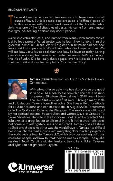 The world we live in now requires everyone to have even a small ounce of love. But is it possible to love "difficult" people? In this book we will discover and learn about the Apostle John. John was one of the 12 disciples of Jesus. He came from an unusual background--feeling a certain way about people. As he studied under Jesus, and learned from Jesus--John had no choice but to love people. What better way to learn how to love than the greatest love of all--Jesus. We will dig deep in scripture and see how important loving people is. We will learn what God requires of us. We will see how Jesus loved back then and how he loves us today. Loving people is not easy, but Jesus is our perfect example. Let's go through the life of John. Did he really show agape love? Is it possible to have that unconditonal love for people? To God be the Glory!