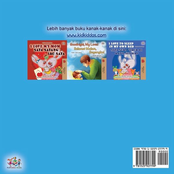 I Love to Keep My Room Clean (Malay edition) This children's book will motivate the kids to take responsibility and keep their room organized. Follow along as little bunny Jimmy and his brothers learn their lesson in this picture book. They learn to work together, clean up their room, and organize their toys. Denne børnebog kan motivere børn til at tage ansvar, samt holde deres værelse ryddeligt. Følg med mens kanin Jimmy og hans brødre lærer "lektien" i denne billedbog. De lærer at samarbejde, gøre værelset rent, samt organisere deres legetøj.