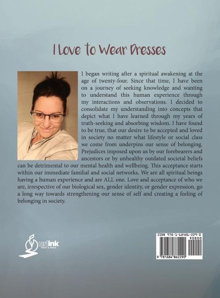 I Love to Wear Dresses I began writing after a spiritual awakening at the age of twenty-four. Since that time, I have been on a journey of seeking knowledge and wanting to understand this human experience through my interactions and observations. I decided to consolidate my understanding into concepts that depict what I have learned through my years of truth-seeking and absorbing wisdom. I have found to be true, that our desire to be accepted and loved in society no matter what lifestyle or social class we come from underpins our sense of belonging. Prejudices imposed upon us by our forebearers and ancestors or by unhealthy outdated societal beliefs can be detrimental to our mental health and wellbeing. This acceptance starts within our immediate familial and social networks. We are all spiritual beings having a human experience and are ALL one. Love and acceptance of who we are, irrespective of our biological sex, gender identity, or gender expression, go a long way towards strengthening our sense of self and creating a feeling of belonging in society. ¿