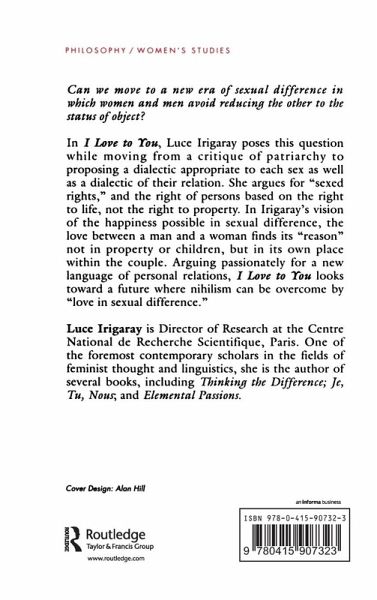 Chapter 1 Introducing: Love Between Us Chapter 2 Human Nature is Two Chapter 3 Sexual Difference as Universal Chapter 4 Donning a Civil Identity Chapter 5 The Other: Woman Chapter 6 She Forgotten Between Use and Exchange Chapter 7 Two of Us, Outside, Tomorrow? Chapter 8 He I Sought But Did Not Find Chapter 9 You Who Will Never Be Mine Chapter 10 I Love to You Chapter 11 In Almost Absolute Silence Chapter 12 A Breath that Touches in Words Chapter 13 Practical Teachings: Love - Between Passion and Civility epilogue Epilogue