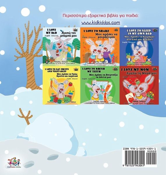 I Love Winter (Greek edition). Winter is a fun and beautiful season to play in the snow, but Jimmy the little bunny was not prepared for the cold weather. Once he learns how to keep himself warm, he can finally enjoy spending time outside with his family.