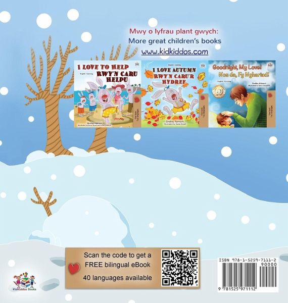 Welsh English Bilingual children's book. Perfect for kids learning English or Welsh as their second language. Winter is a fun and beautiful season to play in the snow, but Jimmy the little bunny was not prepared for the cold weather. Once he learns how to keep himself warm, he can finally enjoy spending time outside with his family.