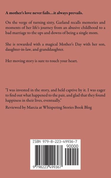 A mother's love never fails…it always prevails. On the verge of turning sixty, Garland recalls memories and moments of her life's journey from an abusive childhood to a bad marriage to the ups and downs of being a single mom. She is rewarded with a magical Mother's Day with her son, daughter in law, and granddaughter. Her moving story is sure to touch your heart.