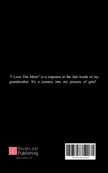 I Love You More is a response to my grandmother's last words to me. It's the start of a long journey of grief and loss, but also a reminder of the love that she had.