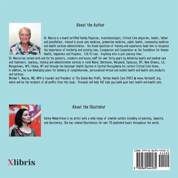 Dr. Mascia is a board certified Family Physician, Anesthesiologist, Critical Care physician, healer, father and grandfather, trained in acute care medicine, preventive medicine, public health, community medicine and health services administration. His broad spectrum of training and experience leads him to recognize the importance of brotherly and sisterly Love, Compassion and Cooperation as the foundation for Human Health, Happiness and Progress. "Life IS Love. Anything else is just passing time." Dr. Mascia has served with and for his patients, students and house staff for over forty years by delivering health and medical care and treatment, teaching, training and administrative services in rural Maine; Baltimore, Maryland; Syracuse, NY; New Orleans, LA; Morgantown, WV; Ithaca, NY and through the Geisinger Health System in Central Pennsylvania his current Critical Care Home. In addition, he now developing plans for delivery of comprehensive, personalized virtual and mobile health and health care products and services. Michael F. Mascia, MD, MPH is Founder and President of The Global Non Profit, Veritas Health Care (VHC) @ www.VeritasHC.org, which will be the recipient of all profits from this book. Proceeds will help VHC help you build your best health and health care.
