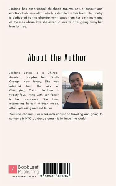 Jordana has experienced childhood trauma, sexual assault and emotional abuse-- all of which is detailed in this book. Her poetry is dedicated to the abandonment issues from her birth mom and all the men whose love she asked to receive after giving away her love for free.