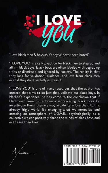 "I Love You" is a call to action for black men to step up and affirm black boys. Black boys are often labeled with degrading titles or dismissed and ignored by society. The reality is that they long for validation, guidance, and love from black men even if they don't verbally express it. "I Love You" is many of the resources the author created that aims to do just that, validate our black boys. In Nathan's experience, he has come to the conclusion that if black men aren't intentionally empowering black boys, by investing in them, then we may accidentally lose them to this already frigid world. By changing what we normalize and creating an atmosphere of L.O.V.E., psychologically as a collective we can positively shape the minds of black boys and even save their lives.