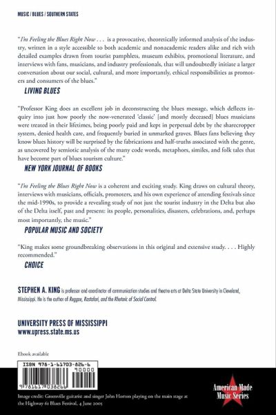 In I'm Feeling the Blues Right Now: Blues Tourism and the Mississippi Delta, Stephen A. King reveals the strategies used by blues promoters and organizers in Mississippi, both African American and white, local and state, to attract the attention of tourists. In the process, he reveals how promotional materials portray the Delta's blues culture and its musicians. Those involved in selling the blues in Mississippi work to promote the music while often conveniently forgetting the state's historical record of racial and economic injustice. King's research includes numerous interviews with blues musicians and promoters, chambers of commerce, local and regional tourism entities, and members of the Mississippi Blues Commission. This book is the first critical account of Mississippi's blues tourism industry. From the late 1970s until 2000, Mississippi's blues tourism industry was fragmented, decentralized, and localized, as each community competed for tourist dollars. By 2004, with the creation of the Mississippi Blues Commission, the promotion of the blues became more centralized as state government played an increasing role in promoting Mississippi's blues heritage. Blues tourism has the potential to generate new revenue in one of the poorest states in the country, repair the state's public image, and serve as a vehicle for racial reconciliation.