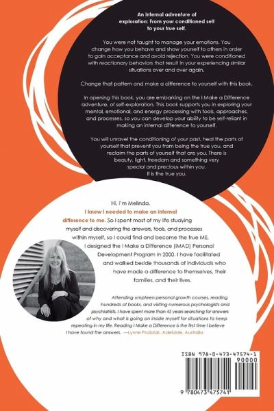 To be your true self, and to know and live by your truth is a process that requires you to want to do so. It requires your willingness to be truthful with where you are at, what is happening internally for you and what you need to do. You may be up to the adventure, you may have travelled a reasonable way along the journey or you may believe you are already there. Or you may be someone who is not quite ready for the adventure yet. No matter where you are on this continuum, I Make a Difference will assist you to identify your location on your journey to being your true self and provide you with resources so you can travel even further and closer to being the true you. The truth about this book - I Make a Difference prompts processing. It also guides you to work through your processing. Reading this book will bring memories to your mind that you have not thought about for a while, or focus you on ones that often travel through your mind. You will feel things emotionally, mentally, physiologically and even energy-wise, and what you feel is what is already within you. And it is your choice as to whether you continue to carry this processing around with you or whether you take further steps to work with these parts of you that want your attention. The processing you experience when you read this book surfaces because your system is naturally bringing it to your attention because you are ready to explore, heal and unravel these aspects of yourself. If you were not ready then it would not surface. And the reason this processing is surfacing is for you to clear more of the path and strengthen the connection, to your true self. Truth - a quick fix to discovering and uncovering who you truly are – your true self is not sustainable, it is a process that requires time and your commitment. Truth - all of us feel emotions, have conditioned thoughts, behaviours, reactions and physiological responses that limit our ability to be who we truly are and live our life naturally. I Make a Difference provides you with the processes, tools and approaches to work through the process of unravelling conditioning, healing the impacts of the past and discovering more of who you truly are, and in a supportive, nurturing and truthful way. You possibly may not like or enjoy some of the experience however if you do stick with it and journey the entirety of the book, you will have empowered yourself even more through your willingness to look at the aspects of yourself that required your focus, as well as having developed your ability to self-facilitate your own growth process. Vulnerability is the fear of facing yourself and your truth so you can do right by yourself. I Make a Difference supports you to do this. There is something pretty awesome in releasing the processing that no longer is right for you as you discover more that is right for you and reconnect to more of the true you. The difference is yours to make.