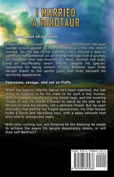 Tiny, sassy, but oh so fierce Rihanna is condemned to a twenty-year sentence on the most savage prison planet in the sector for a crime she didn't commit. On the day of her transfer, she's offered a deal to commute her sentence: an arranged marriage with a grumpy orc-minotaur who has muscles for days, devilish red eyes, and an insufferably smart mouth. Despite his species' reputation for being violent brutes, Rihanna soon finds herself drawn to the gentle giant that lurks beneath his terrifying appearance. Fearsome, savage, and yet so fluffy When the agency informs Zatruk he's been matched,…mehr