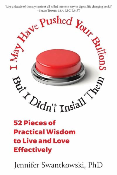 Are you struggling to feel effective in your life and relationships? Do you feel that you are waiting for life to begin, are no longer in the driver's seat, or are unmotivated to make necessary changes? In I May Have Pushed Your Buttons, But I Didn't Install Them, Jennifer Swantkowski, drawing from her three decades of experience in the therapist's chair, provides simple yet thought-provoking and invaluable insights to help her readers slow down, reclaim a sense of agency and infuse their work, play and relationships with meaning and purpose. Through anecdotes and recollections from working with clients as well as her own personal journey, Buttons provides the reader with 52 profound and concise pearls of practical wisdom that are presented in a straightforward narrative. Woven throughout this collection of vignettes and observations is the recurring theme of personal responsibility and holding ourselves accountable for our predispositions, attitudes, and mindsets and how they affect our perceptions about adversity, success, love, and life. Most importantly, readers will appreciate this book for its simple and memorable takeaways; easily recalled when their own choices get in their way of living and loving effectively.