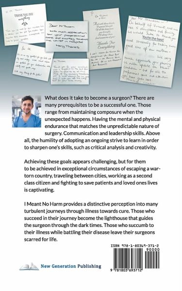 What does it take to become a surgeon? There are many prerequisites to be a successful one. Those range from maintaining composure when the unexpected happens. Having the mental and physical endurance that matches the unpredictable nature of surgery. Communication and leadership skills. Above all, the humility of adopting an ongoing strive to learn in order to sharpen one's skills, such as critical analysis and creativity. Achieving these goals appears challenging, but for them to be achieved in exceptional circumstances of escaping a wartorn country, traveling between cities, working as a second class citizen and fighting to save patients and loved ones lives is captivating. I Meant No Harm provides a distinctive perception into many turbulent journeys through illness towards cure. Those who succeed in their journey become the lighthouse that guides the surgeon through the dark times. Those who succumb to their illness while battling their disease leave their surgeons scarred for life. Author of The Belly and the Whale has said: "Very well written, highly engaging and rich with heart and honesty."