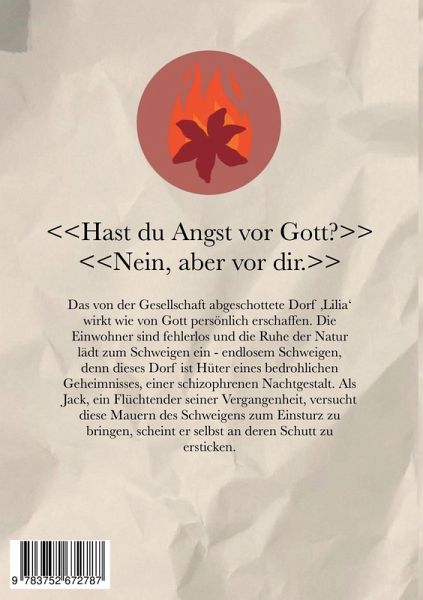 Das von der Gesellschaft abgeschottete Dorf <> wirkt wie von Gott persönlich erschaffen: Die Einwohner sind fehlerlos und die Ruhe der Natur lädt zum Schweigen ein - endlosem Schweigen, denn dieses Dorf ist Hüter eines bedrohlichen Geheimnisses, einer schizophrenen Nachtgestalt. Als Jack, ein Flüchtender seiner Vergangenheit, versucht diese Mauern des Schweigens zum Einsturz zu bringen, scheint er selbst an deren Schutt zu ersticken.