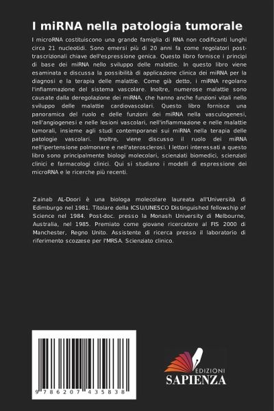 I microRNA costituiscono una grande famiglia di RNA non codificanti lunghi circa 21 nucleotidi. Sono emersi più di 20 anni fa come regolatori post-trascrizionali chiave dell'espressione genica. Questo libro fornisce i principi di base dei miRNA nello sviluppo delle malattie. In questo libro viene esaminata e discussa la possibilità di applicazione clinica dei miRNA per la diagnosi e la terapia delle malattie. Come già detto, i miRNA regolano l'infiammazione del sistema vascolare. Inoltre, numerose malattie sono causate dalla deregolazione dei miRNA, che hanno anche funzioni vitali nello sviluppo delle malattie cardiovascolari. Questo libro fornisce una panoramica del ruolo e delle funzioni dei miRNA nella vasculogenesi, nell'angiogenesi e nelle lesioni vascolari, nell'infiammazione e nelle malattie tumorali, insieme agli studi contemporanei sui miRNA nella terapia delle patologie vascolari. Inoltre, viene discusso il ruolo dei miRNA nell'ipertensione polmonare e nell'aterosclerosi. I lettori interessati a questo libro sono principalmente biologi molecolari, scienziati biomedici, scienziati clinici e farmacologi clinici. Qui si studiano i modelli di espressione dei microRNA e le ricerche più recenti.
