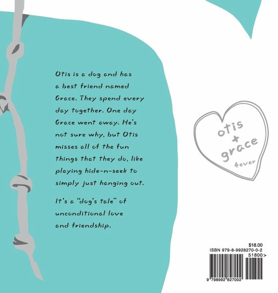 Otis, an energetic pup, has a best friend named Grace. They spend every day together. One day Grace went away. He's not sure why, but Otis misses all of the fun things that they do, like playing hide-n-seek to simply just hanging out. It's a "dog's tale" of unconditional love, friendship and the enduring nature of an everlasting bond.