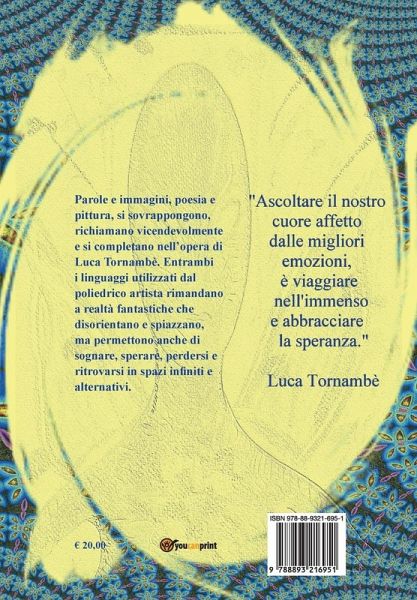 Parole e immagini, poesia e pittura, si sovrappongono, richiamano vicendevolmente e si completano nell'opera di Luca Tornambè. Entrambi i linguaggi utilizzati dal poliedrico artista rimandano a realtà fantastiche che disorientano e spiazzano, ma permettono anche di sognare, sperare, perdersi e ritrovarsi in spazi infiniti e alternativi.