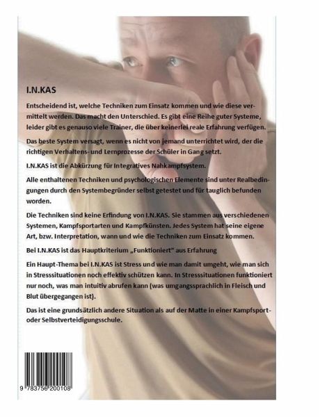 I.N.KASEntscheidend ist, welche Techniken zum Einsatz kommen und wie diese vermittelt werden. Das macht den Unterschied. Es gibt eine Reihe guter Systeme, leider gibt es genauso viele Trainer, die über keinerlei reale Erfahrung verfügen.Das beste System versagt, wenn es nicht von jemand unterrichtet wird, der die richtigen Verhaltens- und Lernprozesse der Schüler in Gang setzt.I.N.KAS ist die Abkürzung für Integratives Nahkampf- und Selbstschutzsystem.Alle enthaltenen Techniken und psychologischen Elemente sind unter Realbedingungen durch den Systembegründer selbst getestet und für tauglich befunden worden. Die Techniken sind keine Erfindung von I.N.KAS bzw. meiner Person. Sie stammen aus verschiedenen Systemen, Kampfsportarten und Kampfkünsten. Jedes System hat seine eigene Art, bzw. Interpretation, wann und wie die Techniken zum Einsatz kommen.Bei I.N.KAS ist das Hauptkriterium 'Funktioniert aus Erfahrung'.Ein Haupt-Thema bei I.N.KAS ist Stress und wie man damit umgeht, wie mansich in Stresssituationen noch effektiv schützen kann. In Stresssituationen funktioniert nur noch, was man intuitiv abrufen kann, was umgangssprachlich in Fleisch und Blut übergegangen ist. Das ist eine grundsätzlich andere Situation als auf der Matte in einer Kampfsport- oder Selbstverteidigungsschule.