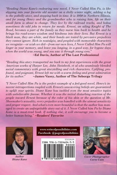 I Never Called Him Pa by Diane Kane is a coming-of-age novel set in the 1950s told in the voice of Henry, a young fatherless boy living on a farm in Northern Illinois with his Grandmother, his wayward mother, and the traveler who changes all their lives. After WWII, the military sent men home on trains. Some never got off. They rode the rails in boxcars, searching for their souls lost to the toils of society or the ravages of war. Ernest, one such man of color, seeks refuge with Henry, Gram, and her daughter Janie on the farm. Their sins and secrets could either drive them apart or bind them together. Take a journey you will never forget in I Never Called Him Pa, by Diane Kane.